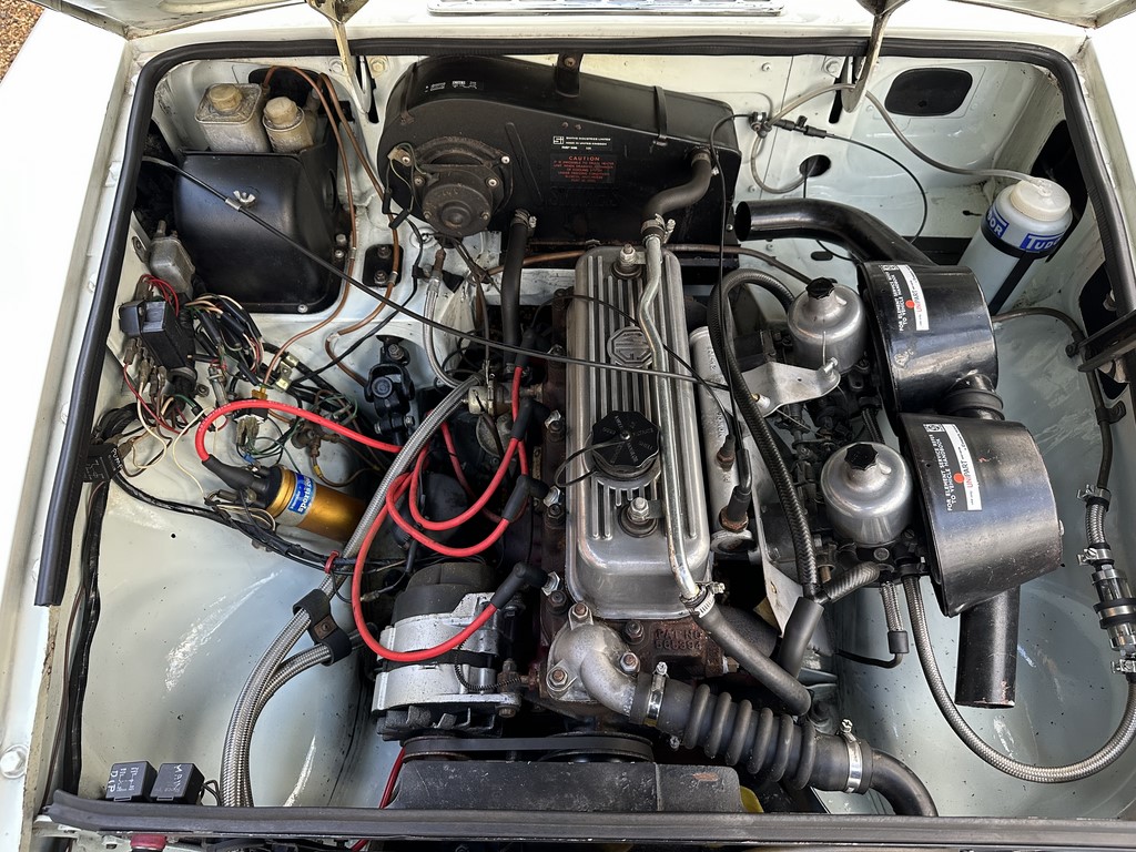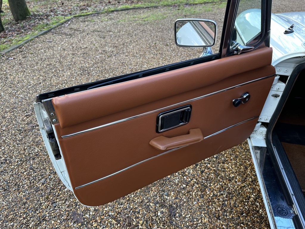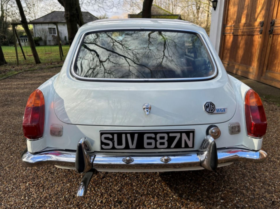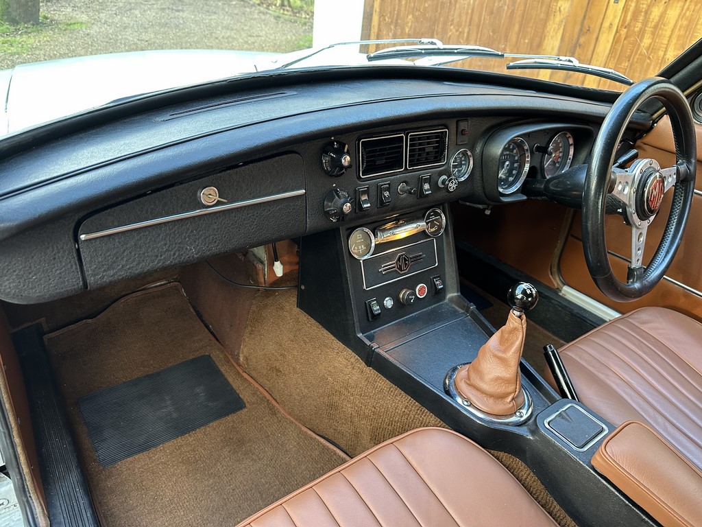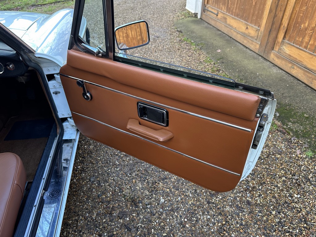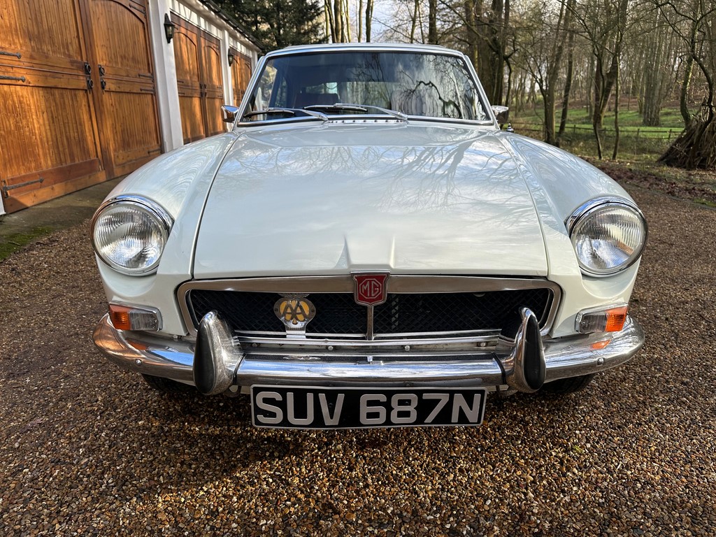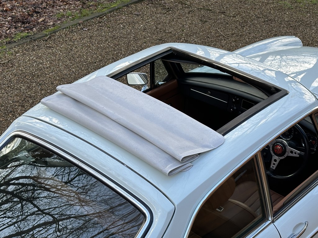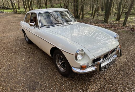 MG BGT Registered 1 August 1974, chrome bumper model, overdrive, older mid 90’s restoration by renowned, BL Heritage Approved Motorspeed Ltd and included sills, jacking points, floor pans, doors, tailgate etc. etc., bare metal prepared White coachwork still presenting well with some imperfections only commensurate with age since restoration and mileage, recent quality Autumn Leaf leather interior trim by ‘Mirror Trim’ specialists of Bedfordshire at a cost of £2.5k, Webasto sunroof, recently detailed engine compartment housing standard 1800 power unit with good oil pressure, nice original condition rare Chrome Rostyle wheels,  heavy history file with a plethora of documents covering the earlier restoration, spread sheets and invoices for more recent works that includes suspension, water pump, starter motor, fresh oils and filters, old mot’s etc.etc. drives delightfully, previously sold by us, just arrived,