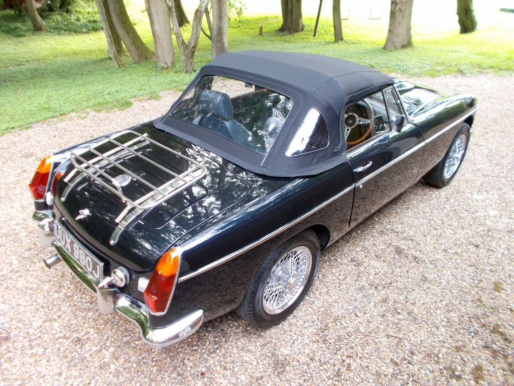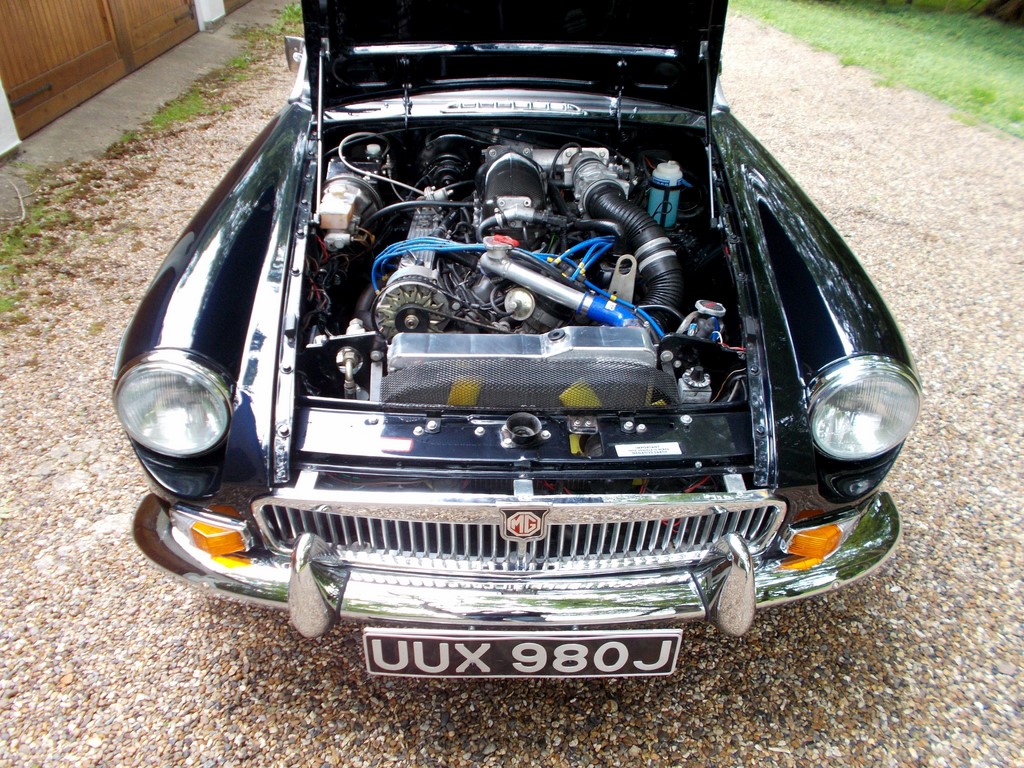 MGB Roadster 1971, V8 conversion utilising a Heritage Shell in 2010 by renowned specialists CCHL of Hull, new 4.6 litre Coscast long engine blueprinted to stage 1 prepared by respected V8 specialist RPI Engineering of Norwich, Hotwire injection system and enhanced ignition system, Borg Warner T5 transmission with up-rated clutch and Centronic clutch release, the body shell, which had been adapted for the V8 conversion incorporates many improvements over standard MGB specification. A number of MGB RV8 parts were used, such as the full front cross-member, up-rated brake discs, callipers, pads, front springs and telescopic shock absorbers, while the rear axle was fitted with SPAX adjustable suspension, RV8 steel bonnet with a bulge to accommodate the 4.6-litre engine, RV8 exhaust manifold and stainless steel system, dark Navy metallic coachwork, fully re-trimmed blue leather interior with reclining front sports seats, walnut pack, Mota-Lita steering wheel, Black Mohair hood, 72-spoke chromed wire wheels, eye watering invoices in heavy history file make for interesting reading for the true V8 enthusiast, this is a unique opportunity to acquire a comprehensively rebuilt V8 on its specially prepared Heritage Shell at a fraction of the £60k costs to commission such a build today, exhilarating drive to say the least, previously sold by us 2021 (images relate), offered for sale direct by private vendor residing in Hertfordshire, please contact our office in the first instance,