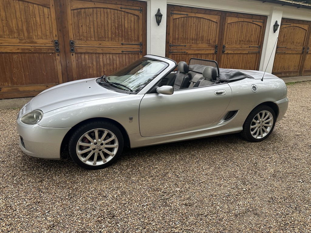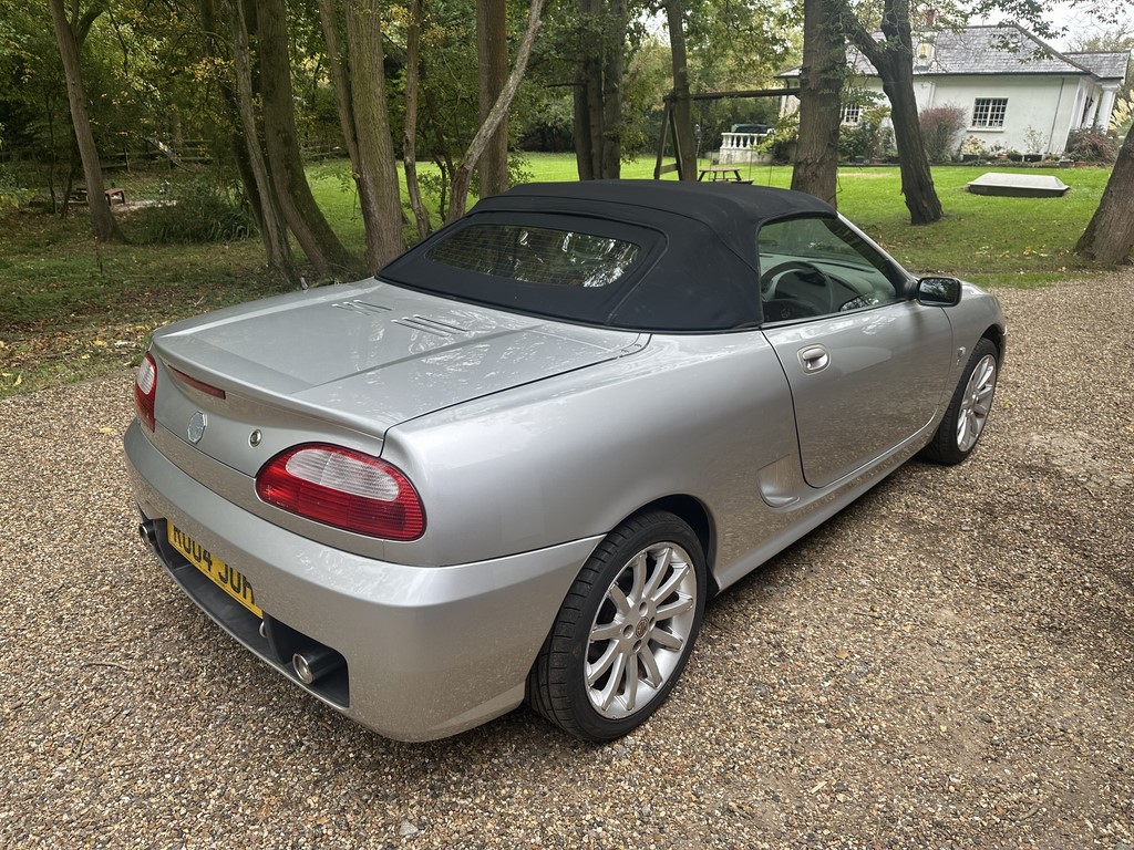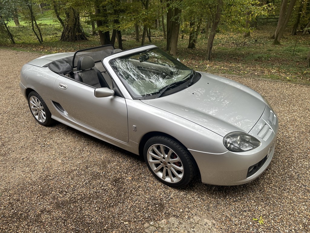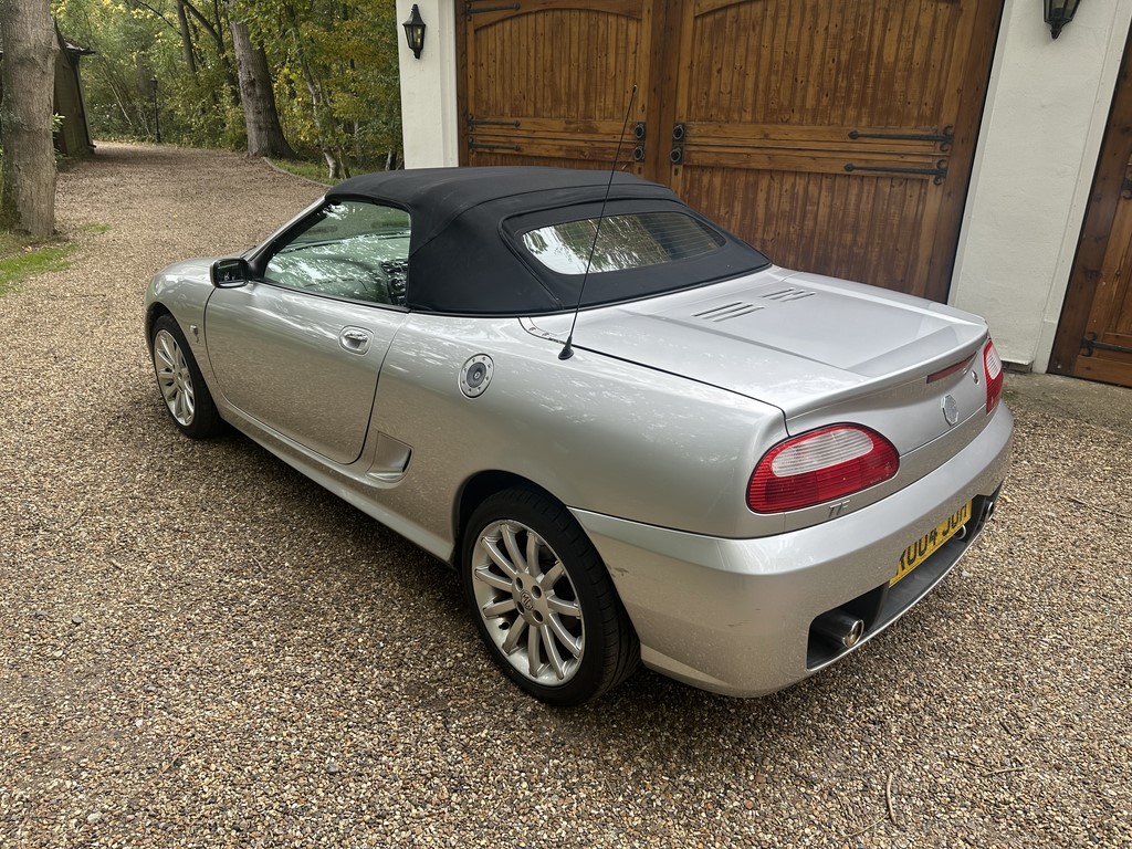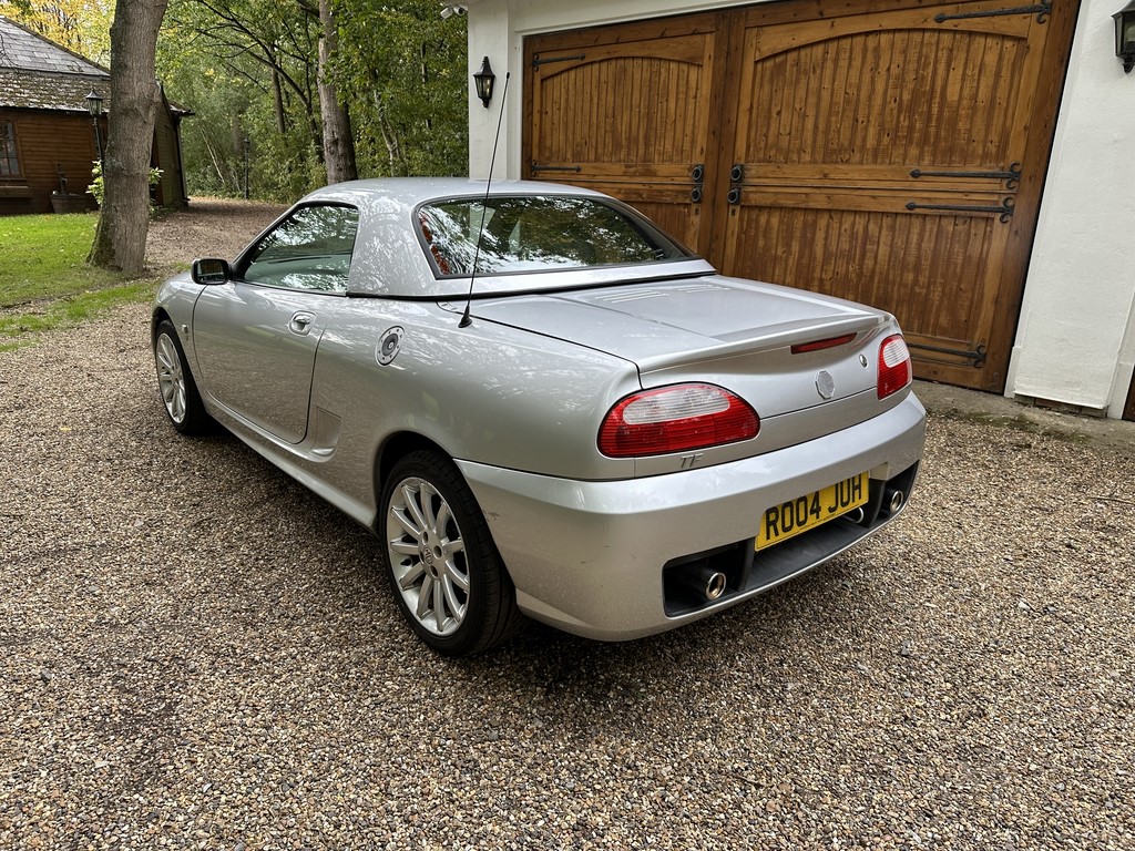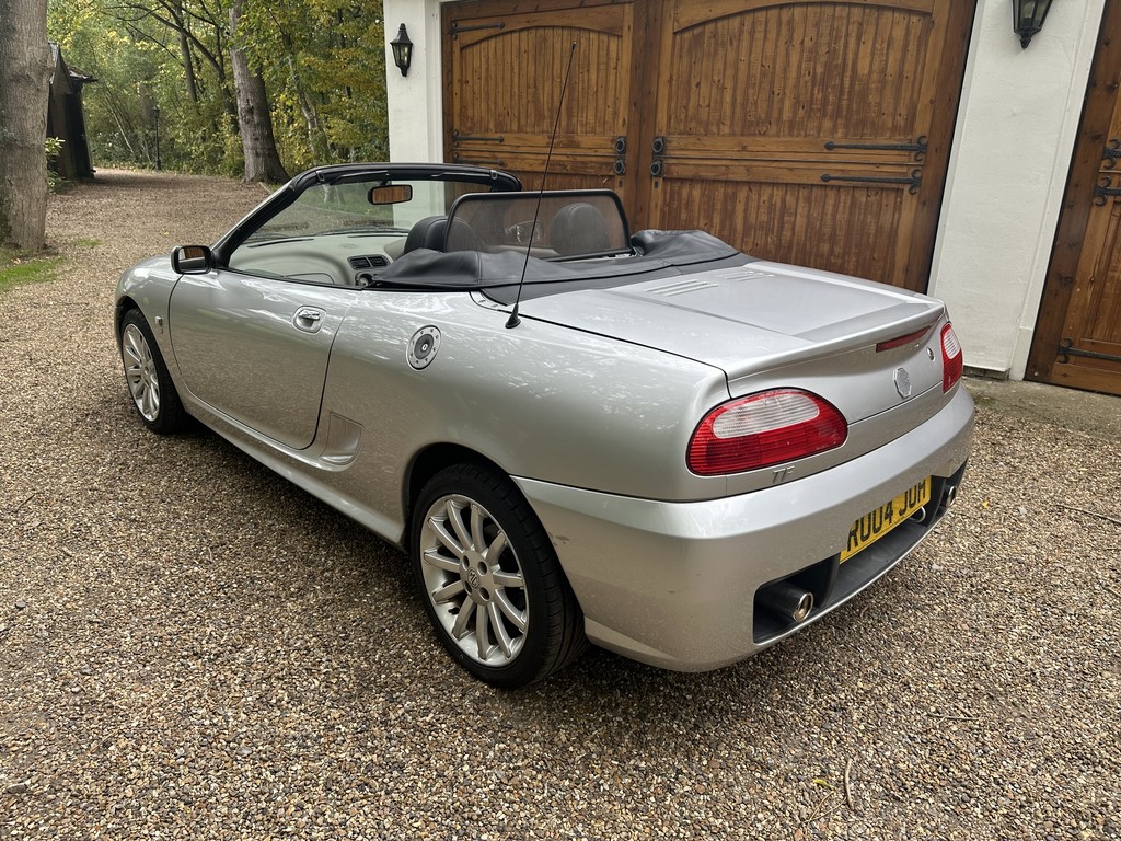 MG TF 135 Sunstorm model, supplied new from Guava Guilford in March 2004, only two owners from new and last owner 18 years, genuine 70,218 miles, Starlight Silver coachwork & Gunsmoke Alcantara trim with only some imperfections commensurate with age & mileage, nice condition hood with glass window and windstop, being the Sunstorm model the car also has a colour coded hardtop, last owner maintained the car during his custodianship and documented services within the service record book, cambelt and water pump etc. were carried out at 61k miles and the vehicle has had an upgraded head gasket at 53k miles, car drives very nicely with no temperature issues, current mot until May 2026, these undervalued vehicles are becoming a modern classic and represent excellent value for money, this model also meets the ULEZ emissions standards, just arrived,