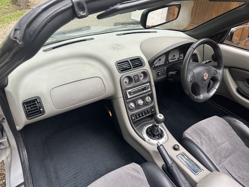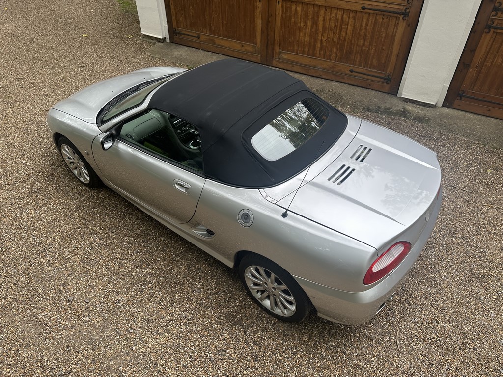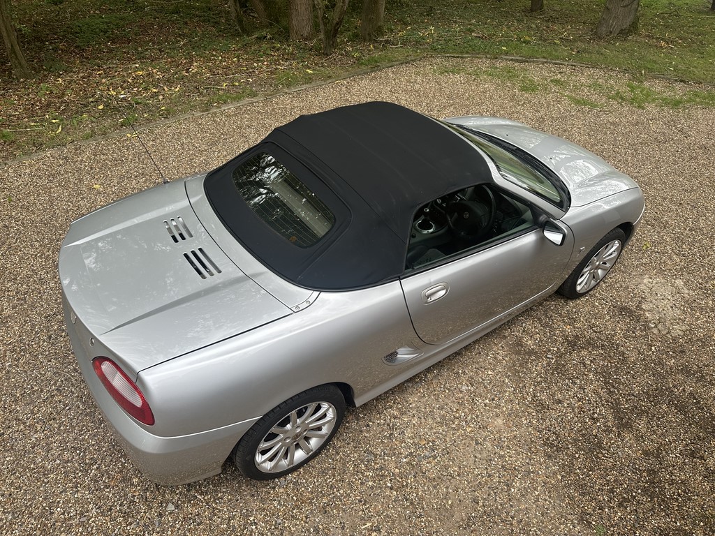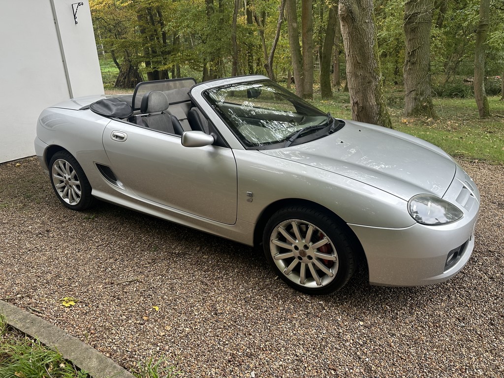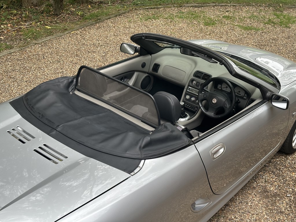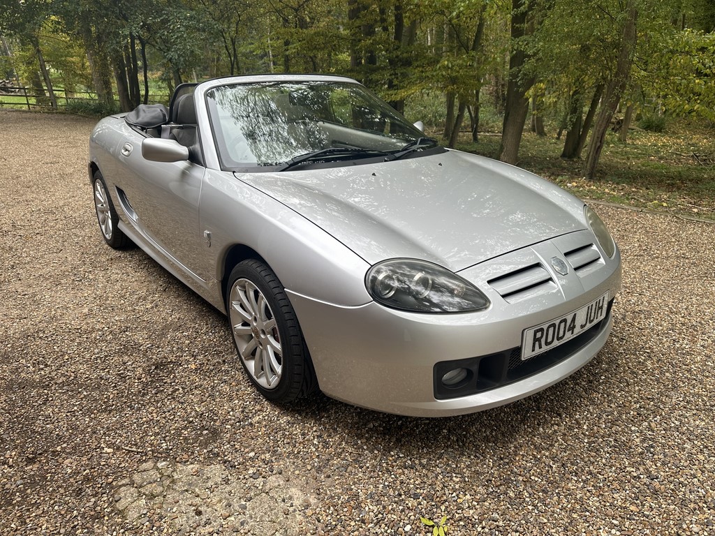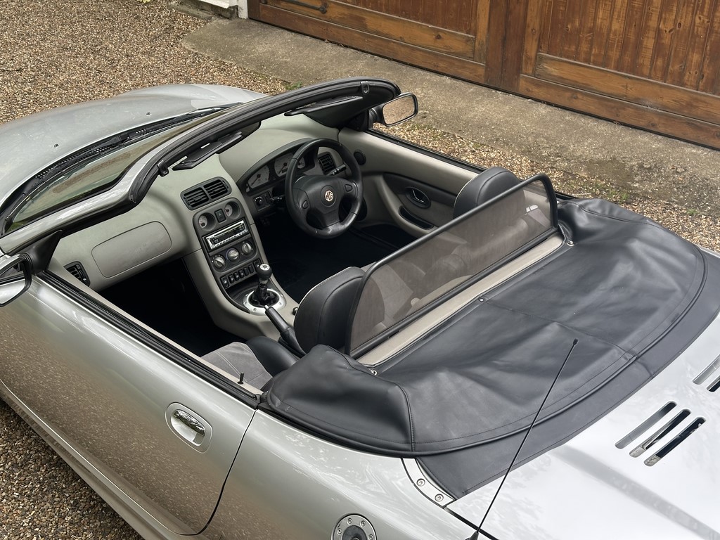 MG TF 135 Sunstorm model, supplied new from Guava Guilford in March 2004, only two owners from new and last owner 18 years, genuine 70,218 miles, Starlight Silver coachwork & Gunsmoke Alcantara trim with only some imperfections commensurate with age & mileage, nice condition hood with glass window and windstop, being the Sunstorm model the car also has a colour coded hardtop, last owner maintained the car during his custodianship and documented services within the service record book, cambelt and water pump etc. were carried out at 61k miles and the vehicle has had an upgraded head gasket at 53k miles, car drives very nicely with no temperature issues, current mot until May 2026, these undervalued vehicles are becoming a modern classic and represent excellent value for money, this model also meets the ULEZ emissions standards, just arrived,