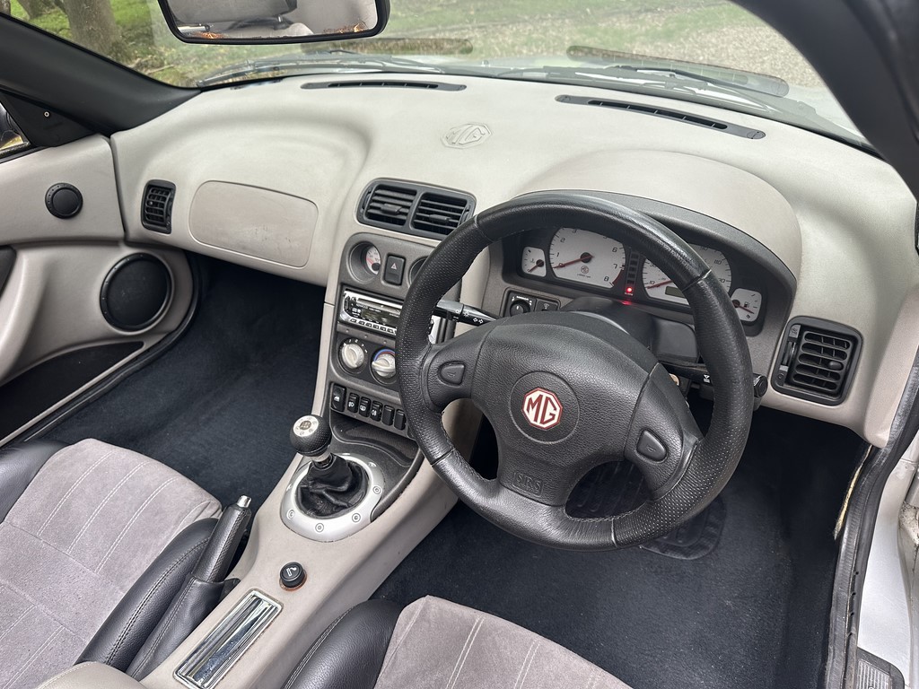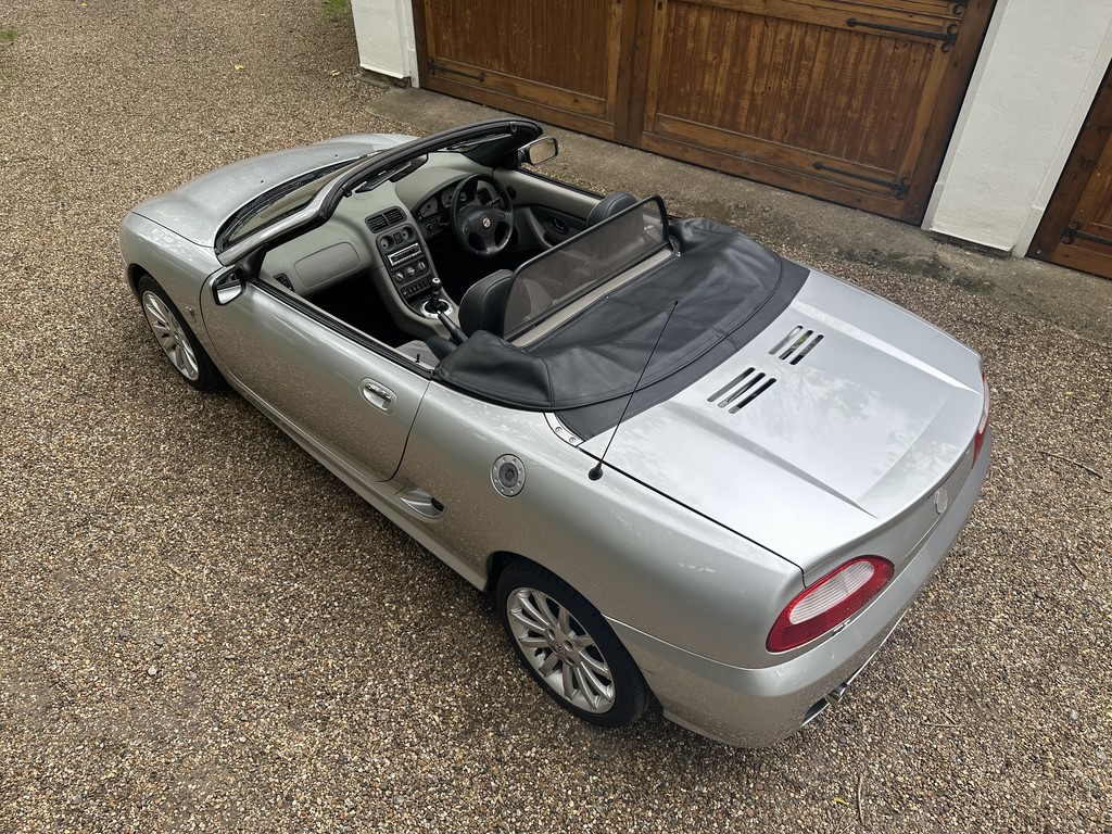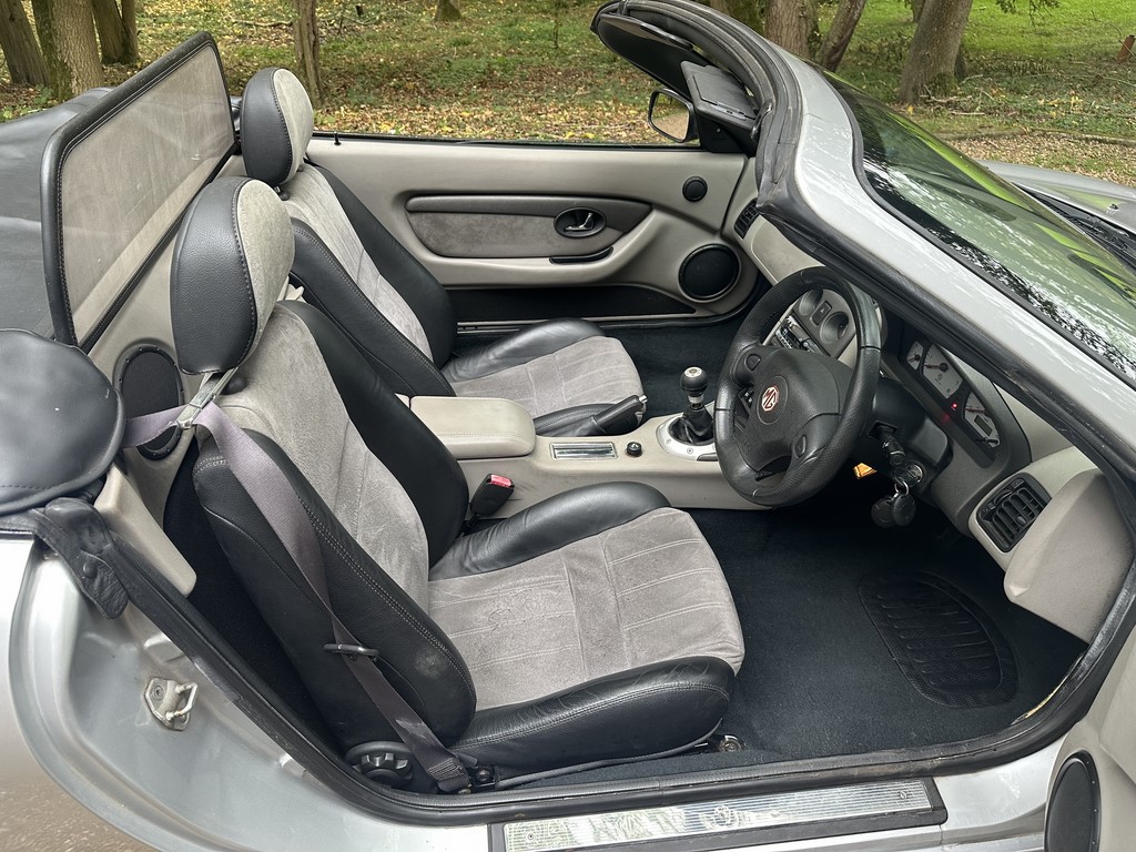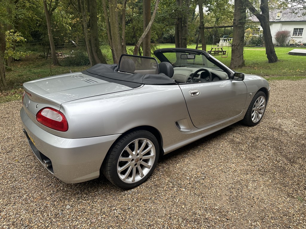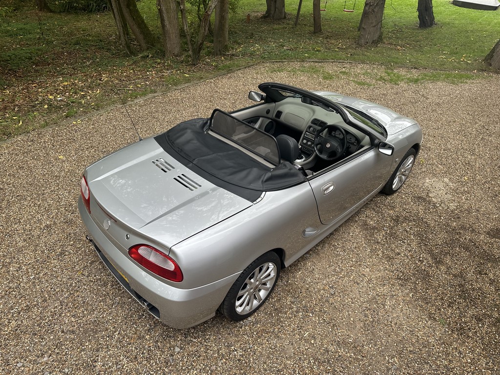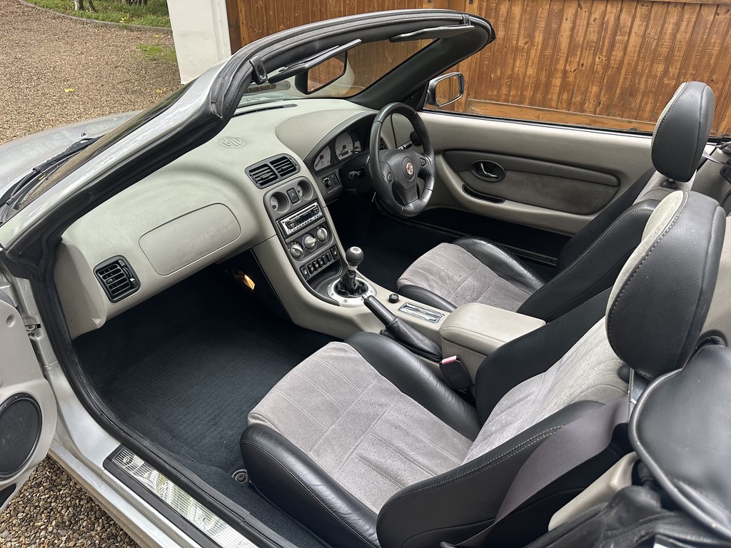 MG TF 135 Sunstorm model, supplied new from Guava Guilford in March 2004, only two owners from new and last owner 18 years, genuine 70,218 miles, Starlight Silver coachwork & Gunsmoke Alcantara trim with only some imperfections commensurate with age & mileage, nice condition hood with glass window and windstop, being the Sunstorm model the car also has a colour coded hardtop, last owner maintained the car during his custodianship and documented services within the service record book, cambelt and water pump etc. were carried out at 61k miles and the vehicle has had an upgraded head gasket at 53k miles, car drives very nicely with no temperature issues, current mot until May 2026, these undervalued vehicles are becoming a modern classic and represent excellent value for money, this model also meets the ULEZ emissions standards, just arrived,